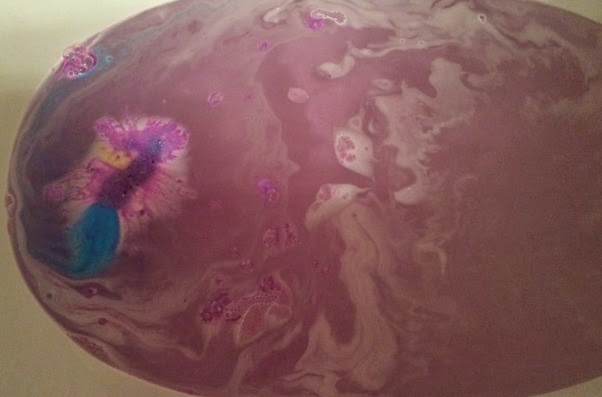 Love this little beauty. It has a very fresh smell and turns the water a pretty purple, yellow, & blue mix to create a lilac color. Also creates s few bubbles and had a few cute stars that float around. Love it to bites!